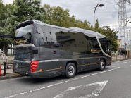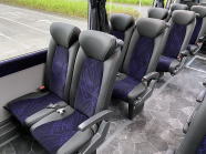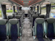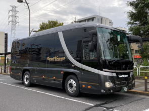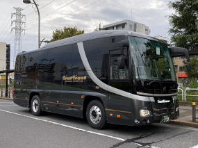 ハイグレード中型バス 業界では珍しい外装黒系、内装もシックなデザインなワンランク上の中型バス。 外装内装とも見栄えがよく乗車するお客様に上品なバスをご用意できます。 トランク2スパン貫通ですので荷物も積載できます。 (Lサイズで20個程度) 正座席28のみ(ガイド席なし) |